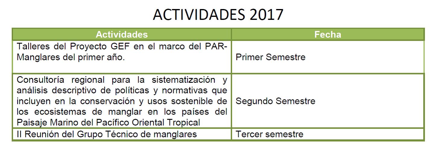 Actividades programadas a realizarse durante el año 2017